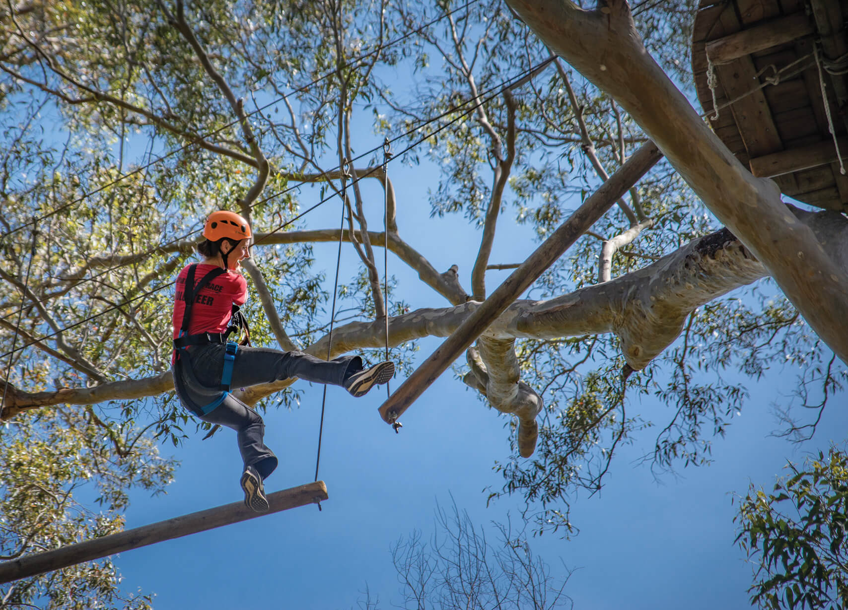 Navigating rope courses, ziplines and aerial challenges at Western Sydney Treetops Adventures.